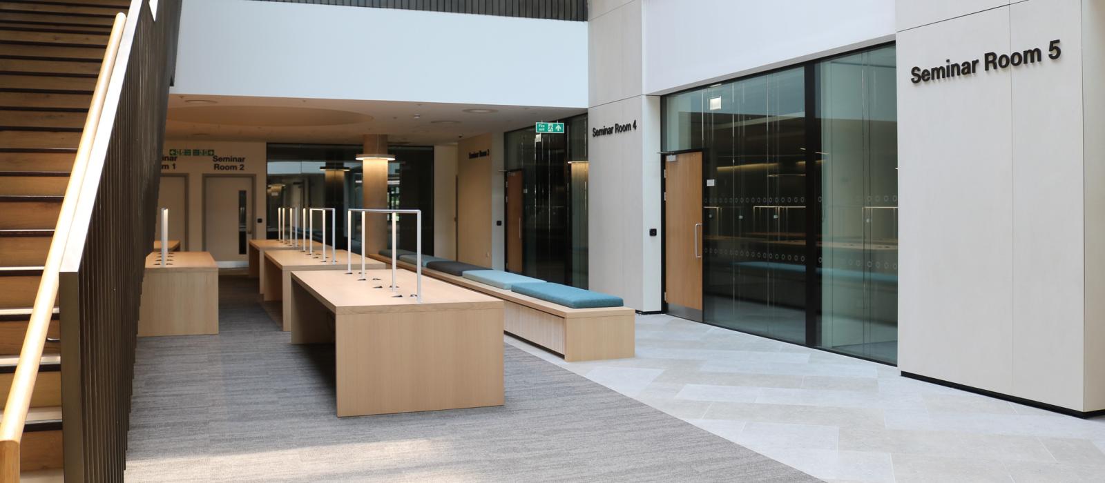 - A range of flexible flat-floor teaching rooms in varying sizes, suitable for workshops, parallel sessions, and breakout spaces.